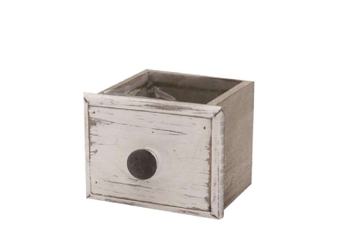 Schubladenbox mit Innenfolie grau-weiss-Vintage 37593 Holz Knauf/Knopf 12/10x10x9cm Folie